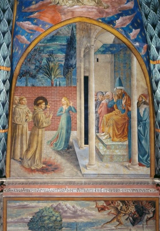 This fresco by Benozzo Gozzoli (1421–1497) is entitled St. Francis of Assisi—Trial by Fire before the Sultan. It was painted in 1452 for the church in San Francesco, Montefalco, Italy. (https://www.wga.hu/html_m/g/gozzoli/2montefa/10scene.html) … [Read more...] about sultan-and-the-saint-film-fresco-st-francis-of-assisi-trial-by-fire-before-the-sultan